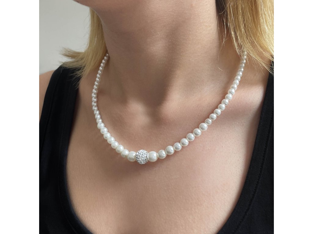 Perlový náhrdelník bílý s Preciosa krystaly 32006.1