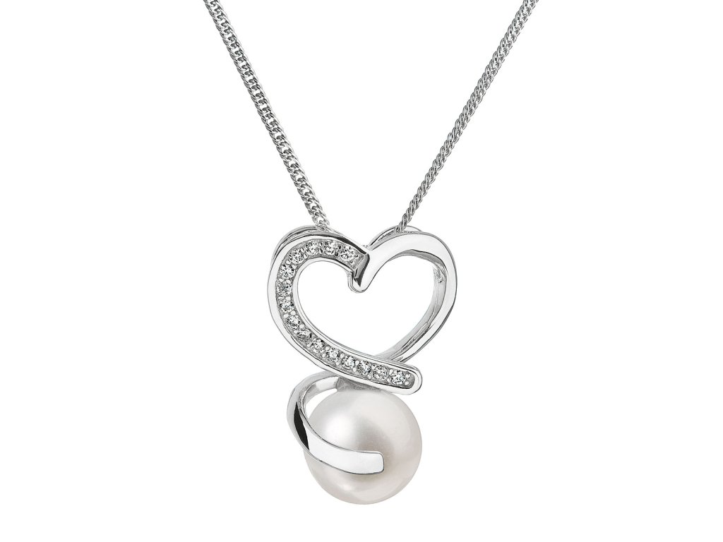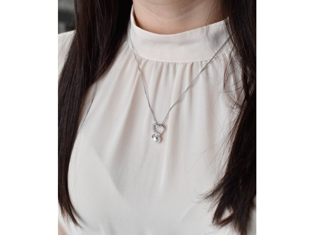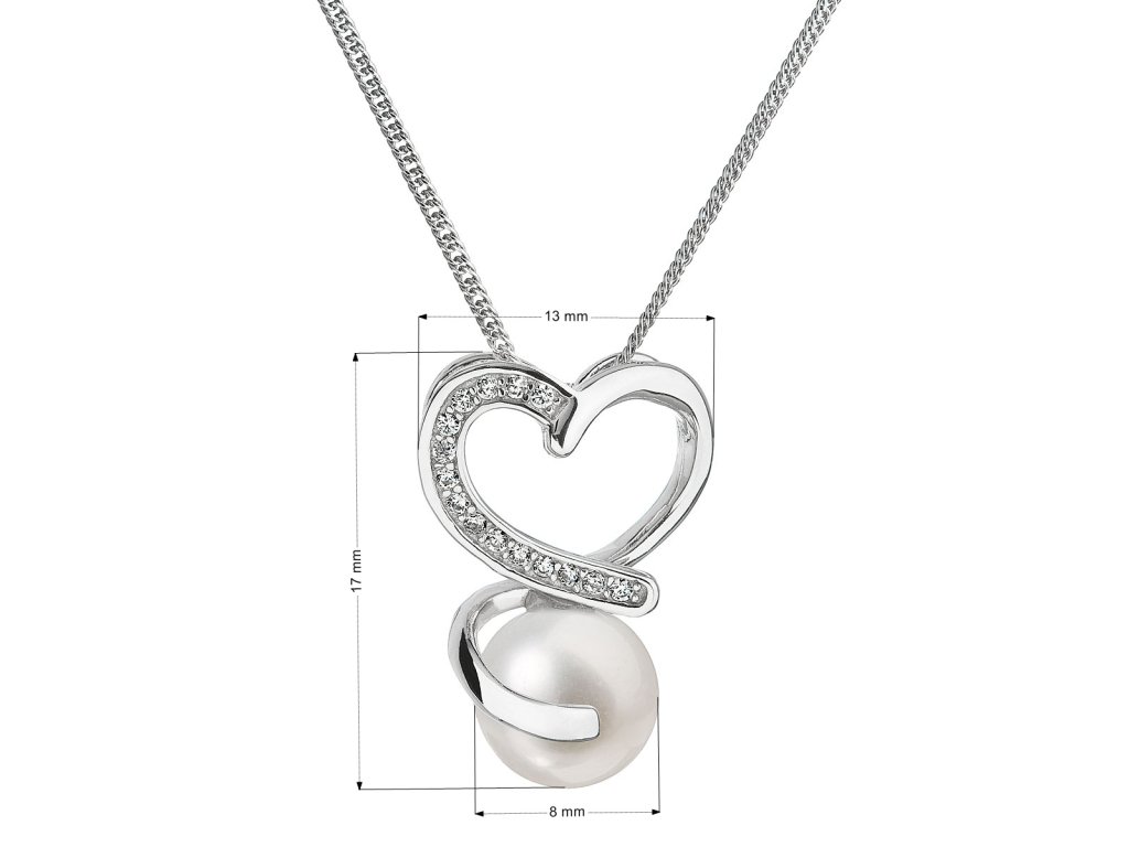Řetízek je vyroben ze stříbra ryzosti 925/1000 včetně povrchové úpravy rhodiem a zaujme především svým originálním přívěškem ve tvaru srdce. To je dozdobeno 15 třpytivými zirkony a bílou říční perlou nejvyšší kvality AAA. Do náhrdelníku není přidán žádný nikl, a tak je vhodný i pro alergiky.