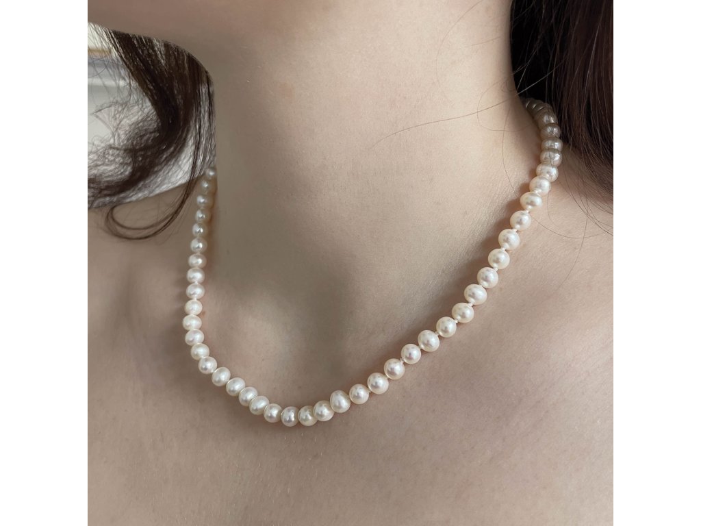 - bílý perlový náhrdelník z pravých říčních sladkovodních perel