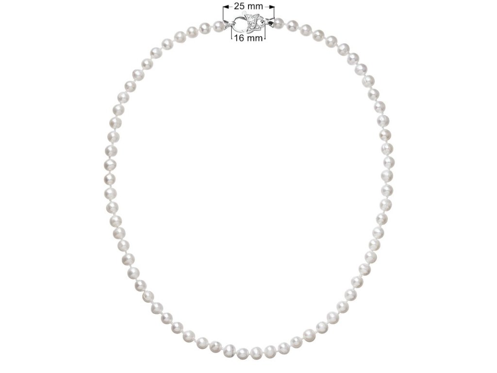 Ať už se chystáte na jakoukoliv slavnostní akci, s náhrdelníkem s navlečenými kulatými perlami nikdy nešlápnete vedle. Ba naopak, skvěle doladí váš dokonalý outift!Perlový náhrdelník 22002.1 o celkové délce 45 cm se skládá z oválných pravých říčních perel v bílé barvě. Každá perla je zajištěna uzlíkovou vazbou, a tak se při nechtěném přetržení náhrdelníku nestane, že se vám perly rozkutálí na všechny strany. Zajímavě je řešené stříbrné zapínání náhrdelníku ve tvaru karabiny s několika ozdobnými zirkony. Stříbro použité na zapínání náhrdelníku má ryzost 925/1000 a rhodiovou povrchovou úpravu. Náhrdelník neobsahuje nikl, a tak ho mohou nosit i alergici.