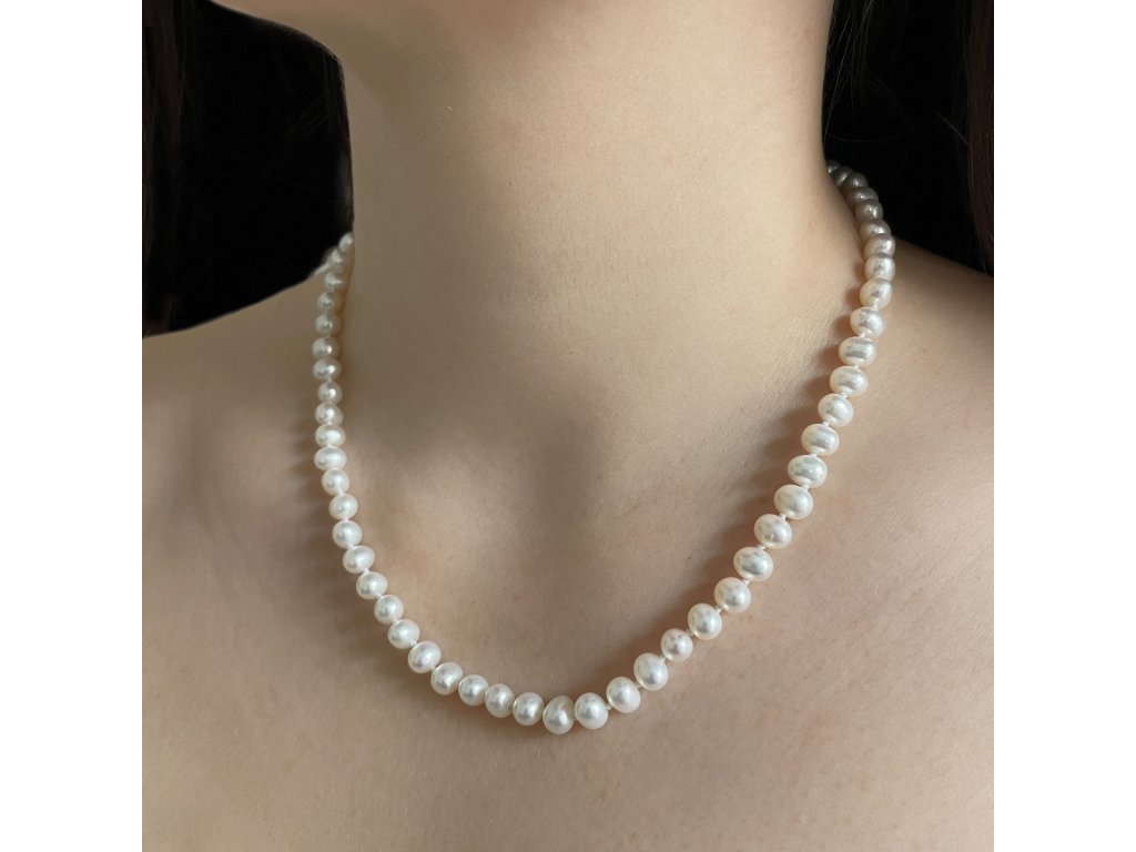 Perlový náhrdelník z pravých říčních perel bílý 22006.1