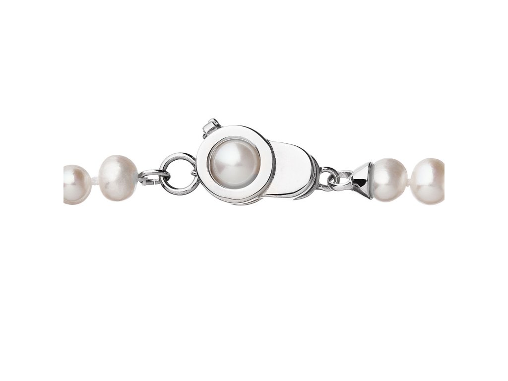 Ať už se chystáte na jakoukoliv slavnostní akci, s náhrdelníkem s navlečenými kulatými perlami nikdy nešlápnete vedle. Ba naopak, skvěle doladí váš dokonalý outift!Perlový náhrdelník 22006.1 o celkové délce 45 cm se skládá z pravých říčních perel v bílé barvě. Každá perla je zajištěna uzlíkovou vazbou, a tak se při nechtěném přetržení náhrdelníku nestane, že se vám perly rozkutálí na všechny strany. Jedna perlička navíc se ještě ukrývá v zajímavě řešeném stříbrném zapínání s bezpečnostní pojistkou. Stříbro použité na zapínání náhrdelníku má ryzost 925/1000 a rhodiovou povrchovou úpravu. Náhrdelník neobsahuje nikl, a tak ho mohou obléci i alergici.