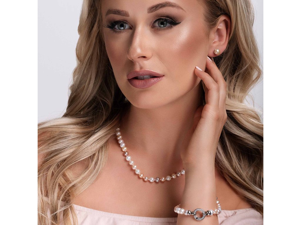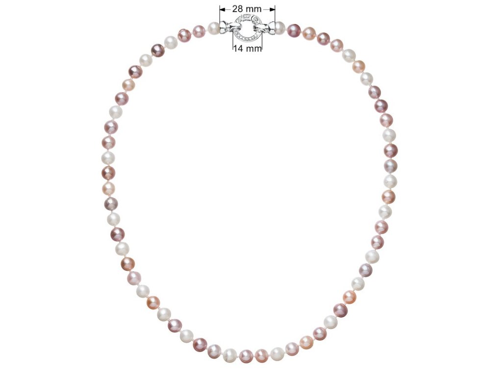 Perlový náhrdelník 22004.3 o celkové délce 45 cm se skládá z pravých říčních perel v různých barvách jemných tónů. Každá perla je zajištěna uzlíkovou vazbou, a tak se při nechtěném přetržení náhrdelníku nestane, že se vám perly rozkutálí na všechny strany. Zajímavě řešené kulaté stříbrné zapínání zdobené několika třpytivými zirkony dodává náhrdelníku na eleganci. Stříbro použité na zapínání má ryzost 925/1000 a rhodiovou povrchovou úpravu. Náhrdelník neobsahuje nikl, a tak ho mohou bez obav nosit i alergici.