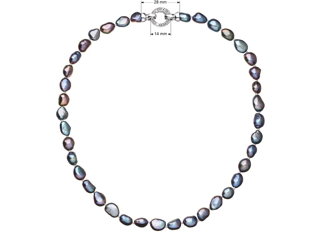 Luxusní skvost na ladném krku, který korunuje vaši krásu.Perlový náhrdelník 22027.3 o celkové délce 45 cm je sestaven z pravých říčních perel v modré barvě. Každá perla je zajištěna uzlíkovou vazbou, a tak se při nechtěném přetržení náhrdelníku nestane, že se vám perly rozkutálí.