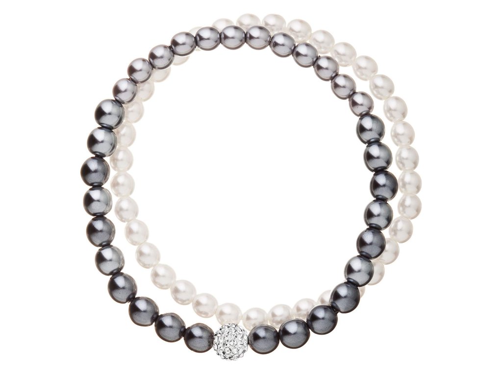 Perlový náramek bílá šedá s Preciosa krystaly 33106.3
