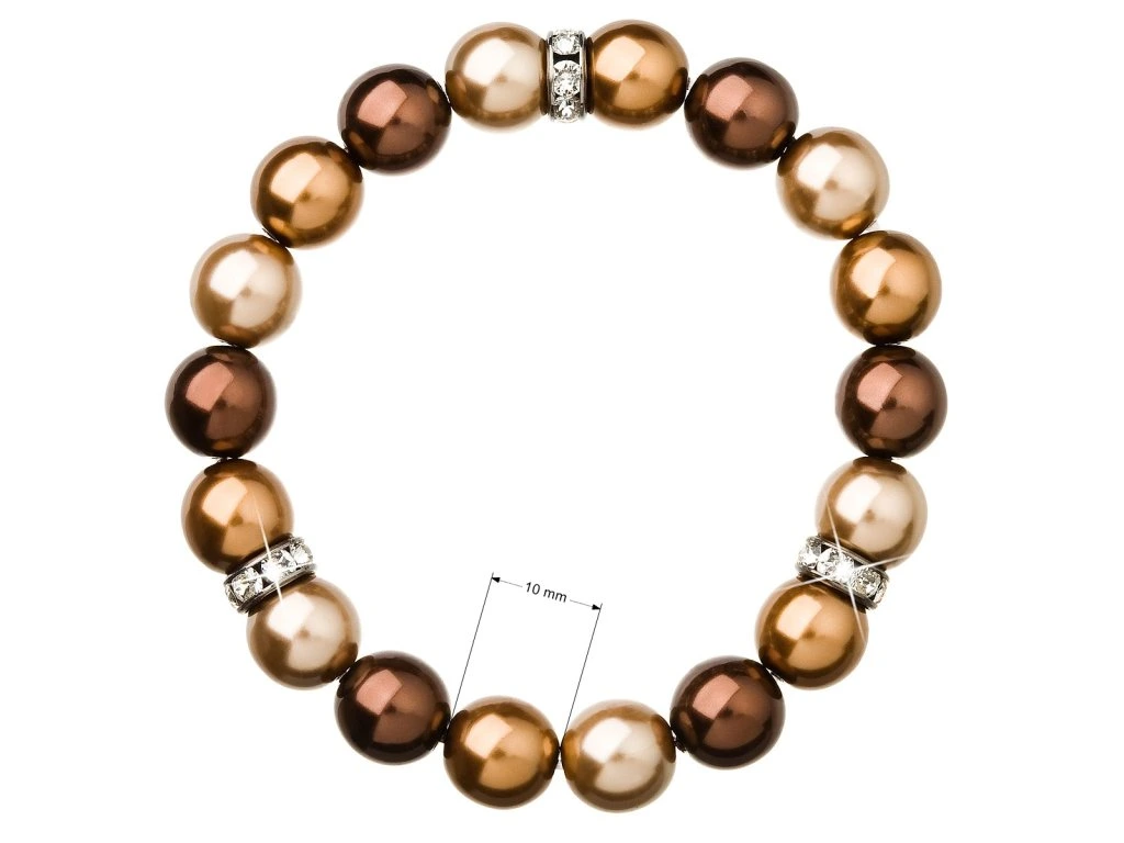 Doplňte svůj outfit perlovým náramkem v hnědé barvě, který krásně ozdobí vaše zápěstí.Náramek 33061.3 je navlečen z hnědých a bronzových kulatých perel, mezi něž jsou vloženy tři kulaté rondelky osázené Swarovski krystaly. Krystaly jsou v bílé barvě. Na rondelky byl použit bižuterní kov, jehož povrch prošel úpravou rhodiem. Rhodium šperk chrání proti zčernání, zežloutnutí nebo poškrábání. Jelikož náramek neobsahuje přídavek niklu, mohou jej bez obav z alergické reakce nosit i alergici.
