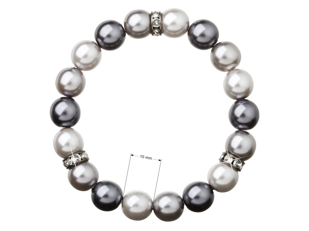 Doplňte svůj outfit perlovým náramkem v šedé barvě, který krásně ozdobí vaše zápěstí.Náramek 33061.3 je navlečen z kulatých šedých perel, mezi něž jsou vloženy tři kulaté rondelky osázené Swarovski krystaly. Krystaly jsou v bílé barvě. Na rondelky byl použit bižuterní kov, jehož povrch prošel úpravou rhodiem.Rhodium šperk chrání proti zčernání, zežloutnutí nebo poškrábání. Jelikož náramek neobsahuje přídavek niklu, mohou jej bez obav z alergické reakce nosit i alergici.