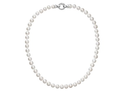 Perlový náramek o délce 19,5 cm je složen z celkem 20-21 kulatých říčních perel kvality AA velikosti 7,5 - 8 mm v bílé barvě. Každá perla je zajištěna uzlíkovou vazbou, a tak se při nechtěném přetržení náramku nestane, že se vám perly rozkutálí na všechny strany. Zajímavě řešené kulaté stříbrné zapínání zdobené několika třpytivými zirkony dodává náramku na eleganci. Stříbro použité na zapínání má ryzost 925/1000 a rhodiovou povrchovou úpravu. Náramek neobsahuje nikl, a tak ho mohou bez obav nosit i alergici.