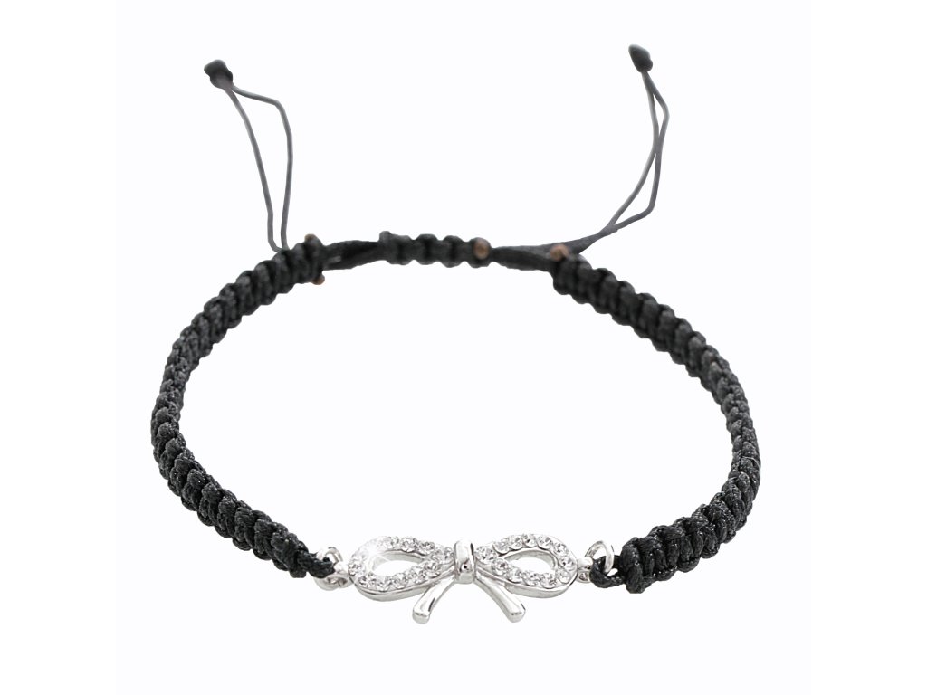 Pletený náramek ze šňůrek se stříbrným přívěskem mašle a krystaly Swarovski Crystal (Stříbro 925/1000)