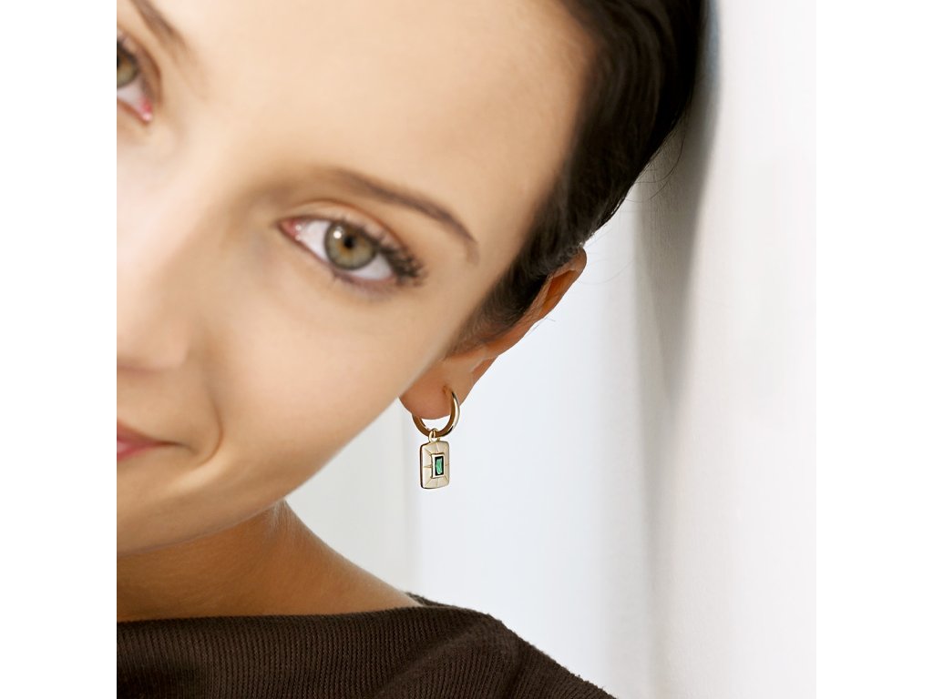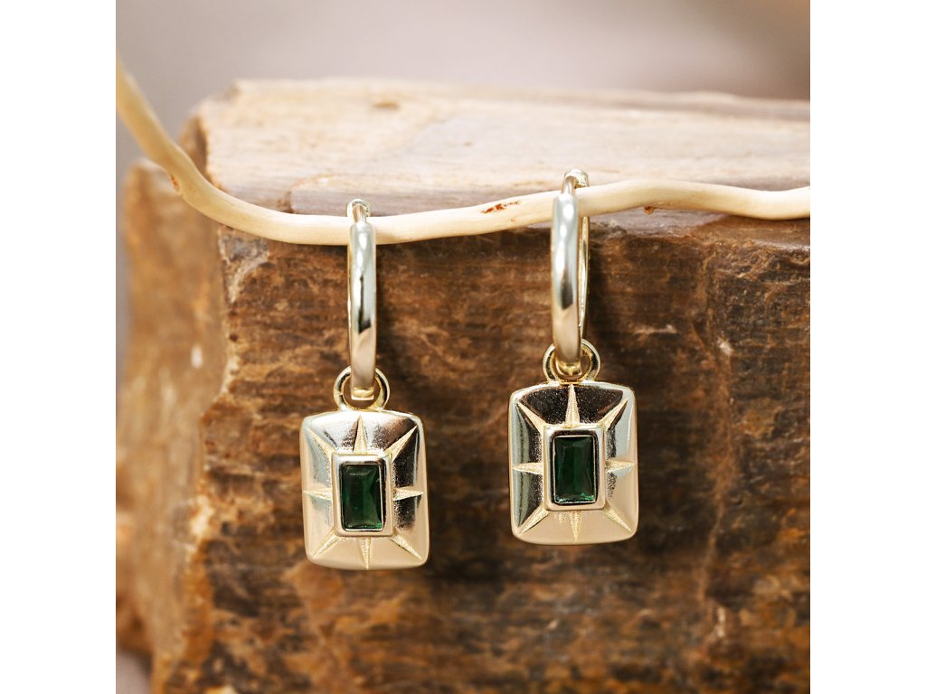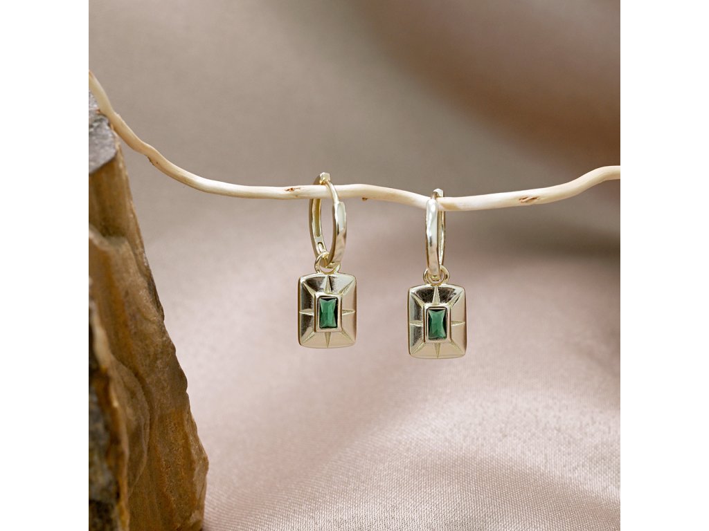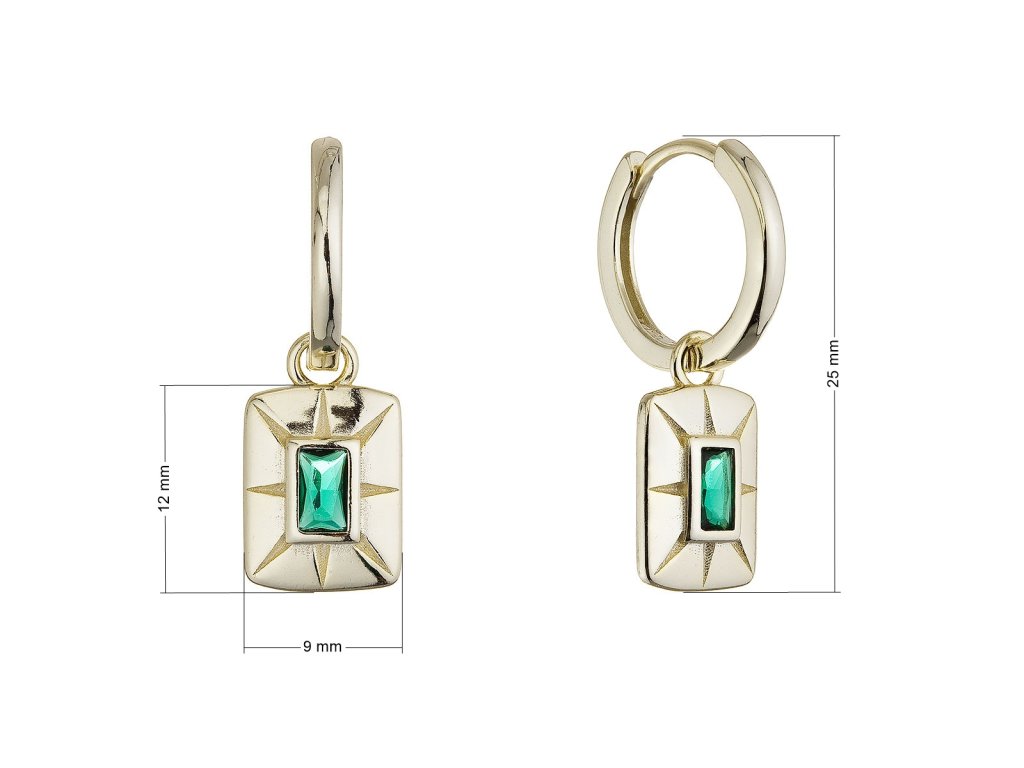 Pozlacené kruhové náušnice 11779.3 se zeleným zirkonem jsou ztělesněním elegance. Jejich jemný design s obdélníkovým přívěskem a rytým hvězdným motivem zaujme na první pohled.