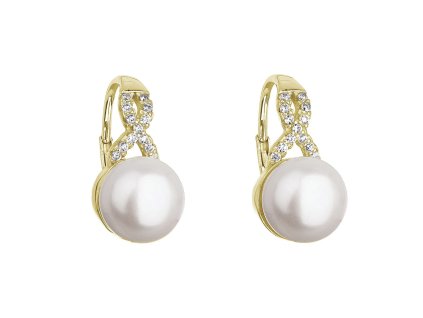 Pozlacené náušnice kruhy s bílou říční perlou 21130.1