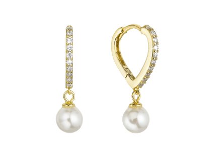 Pozlacené náušnice kruhy s bílými říčními perlami 21131.1