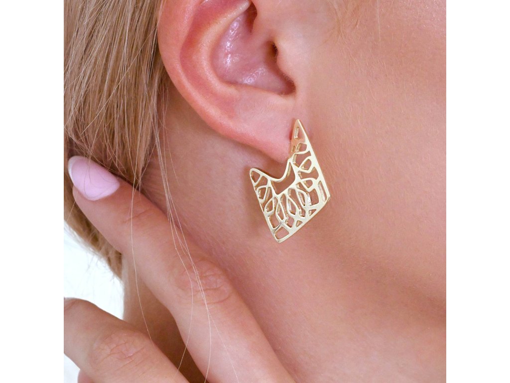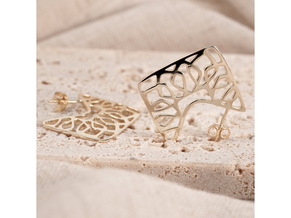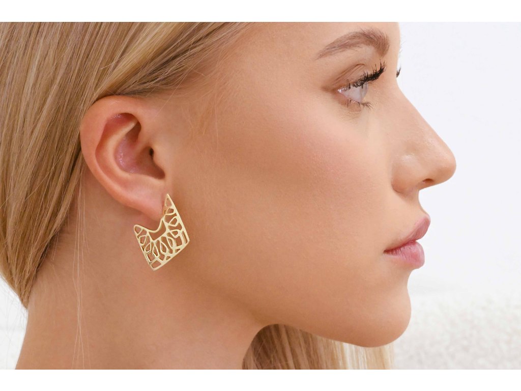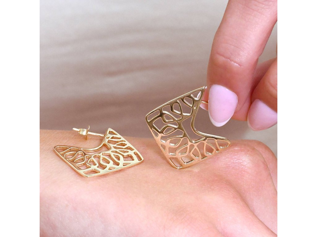 Díky zajímavému děrování připomínajícímu jemnou síť, náušnice působí lehce a vzdušně. Tento detail dodává šperku originalitu a jedinečnost.