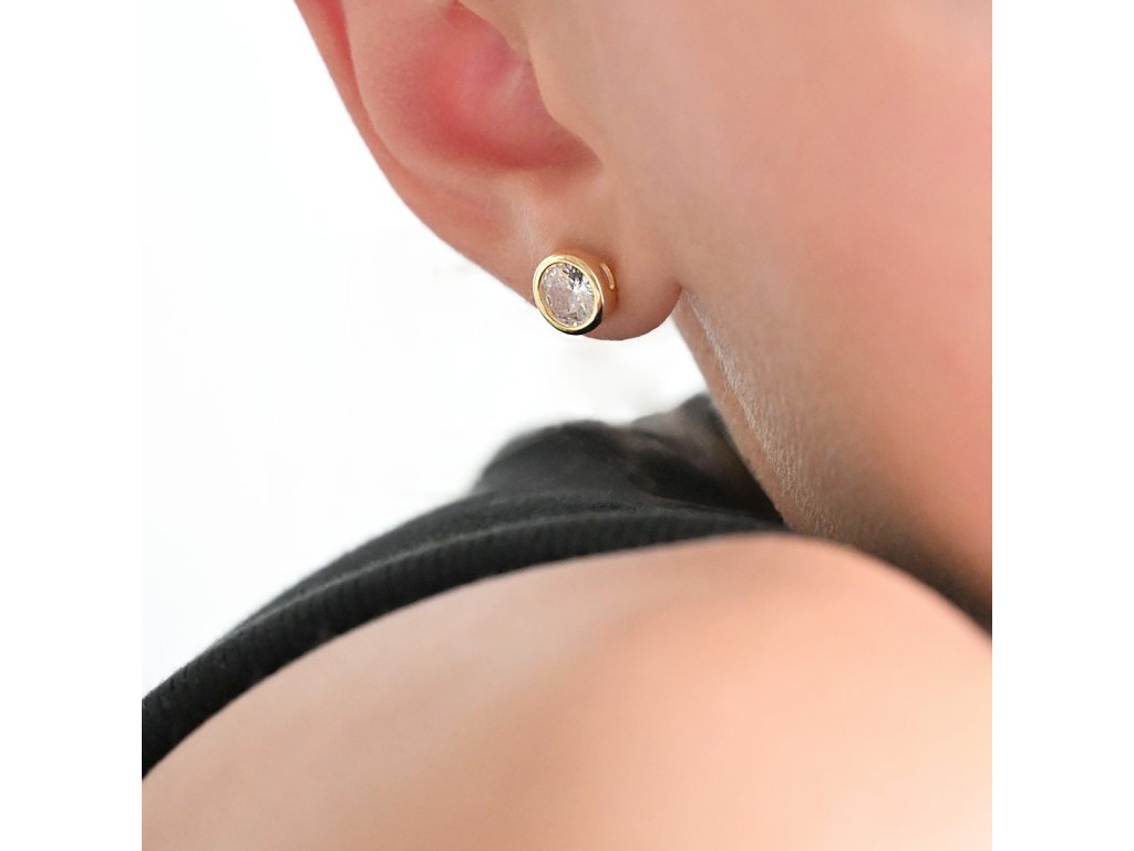 Elegantně v pozlaceném stříbře se třpytí zirkonek jako hvězda. Moderní minimalistické náušnice jsou nejoblíbenější pro jejich jednoduchost a krásu.