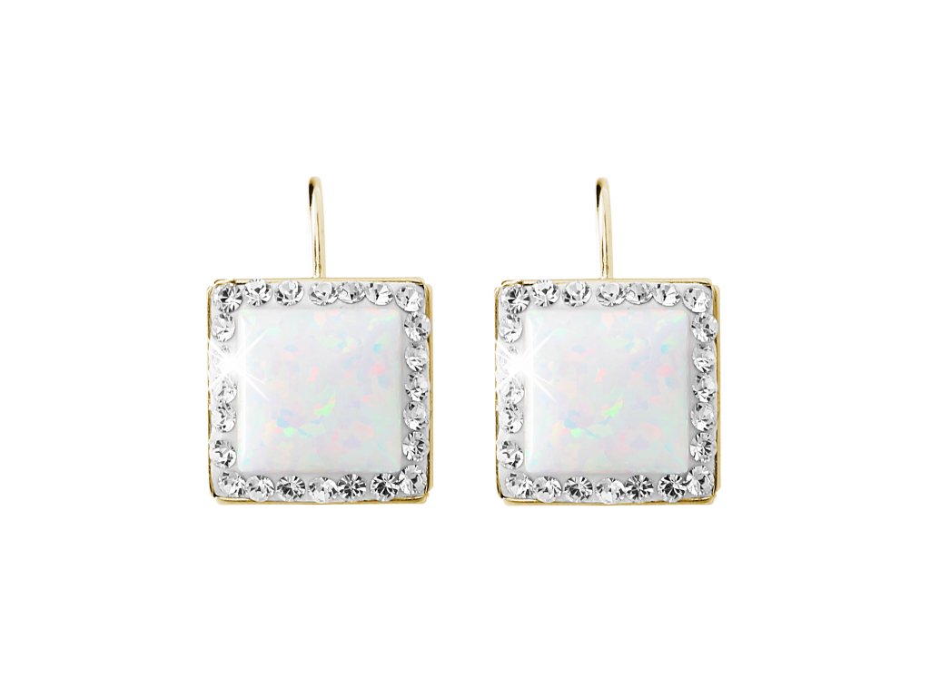 Pozlacené stříbrné náušnice klapky s čtvercovým opálem a krystaly Swarovski White velké (Stříbro 925/1000)