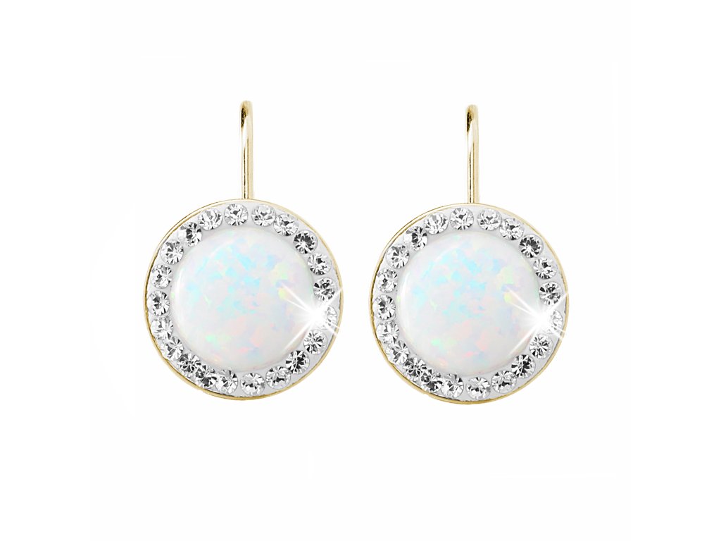 Pozlacené stříbrné náušnice klapky s kulatým opálem a krystaly Swarovski White velké (Stříbro 925/1000)