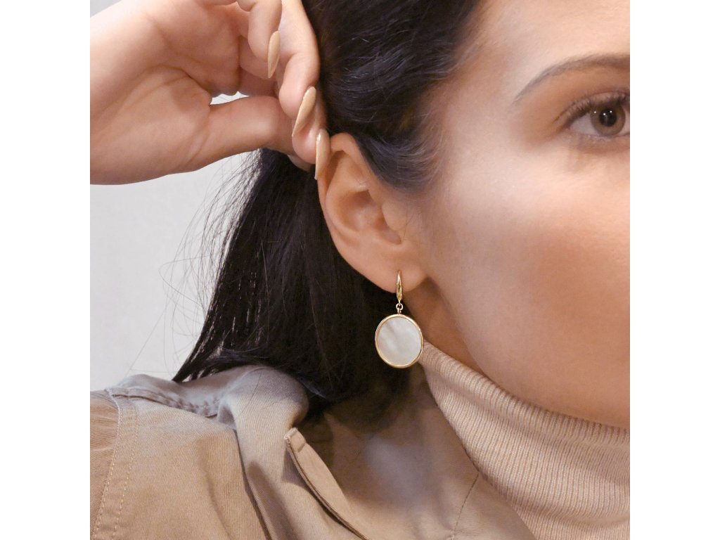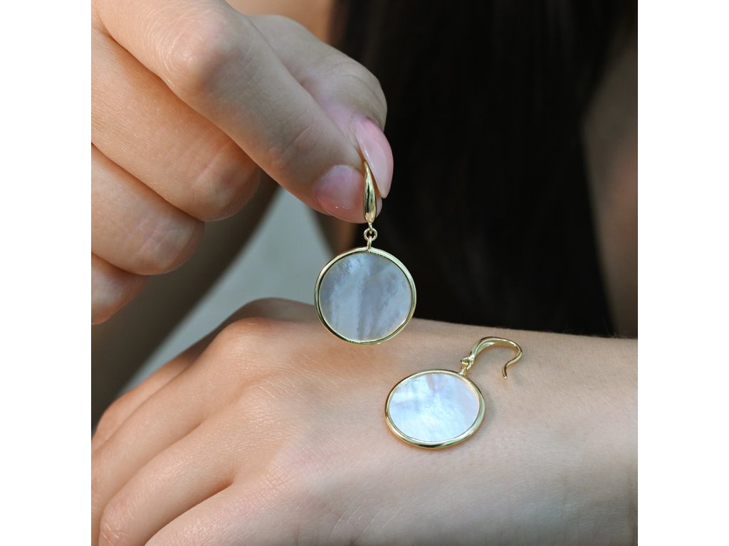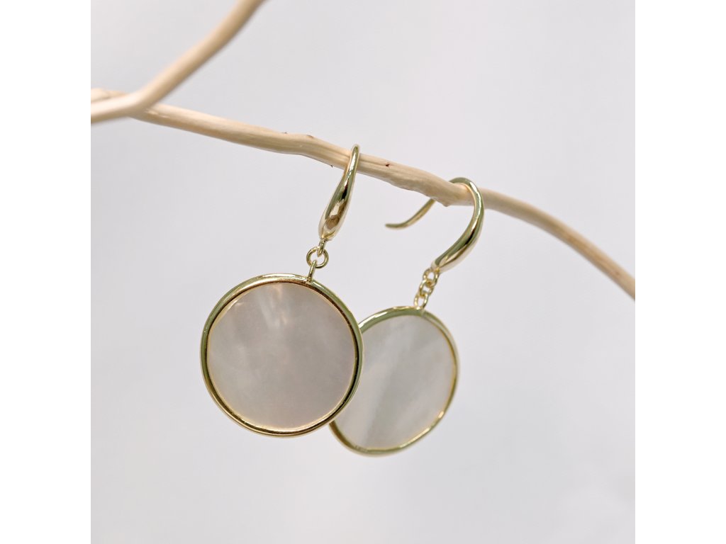 Pozlacené stříbrné náušnice kolečka s perletí 11795.1