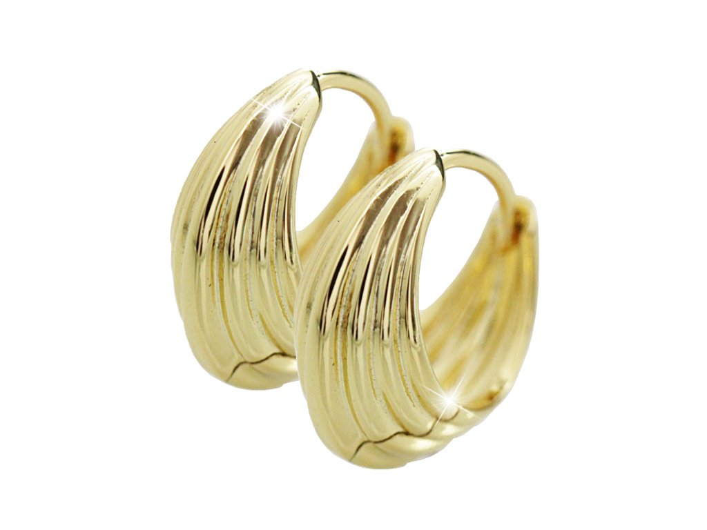 Pozlacené stříbrné náušnice kroužky vroubkovaně zdobené bez krystalů (Stříbro 925/1000)