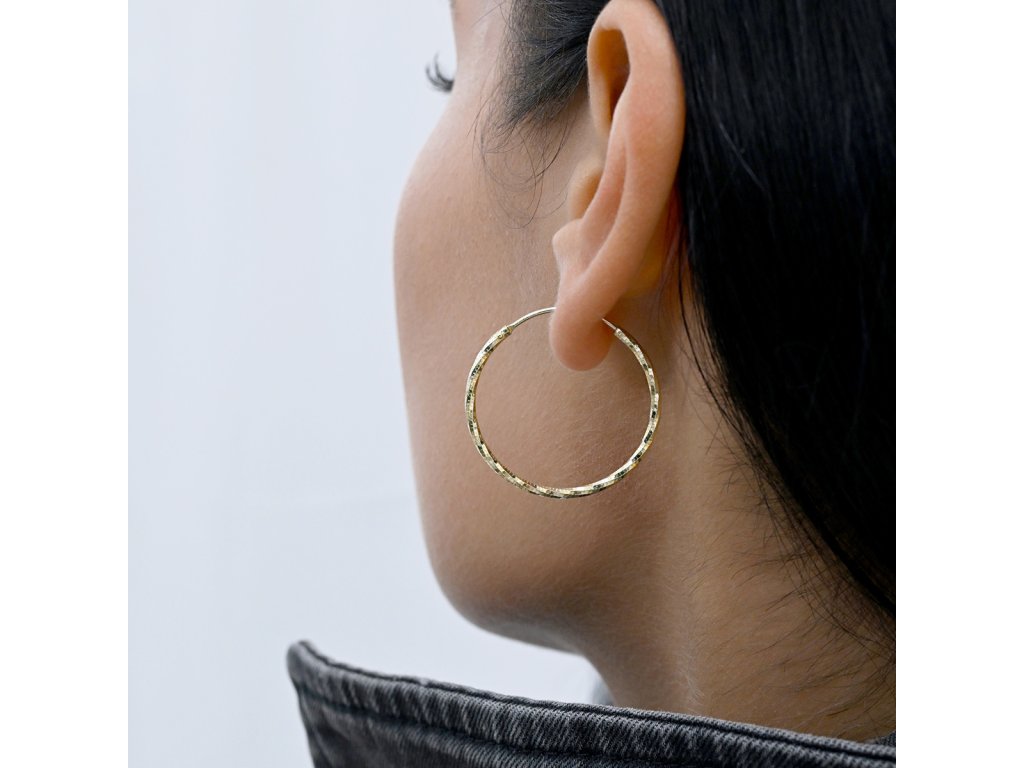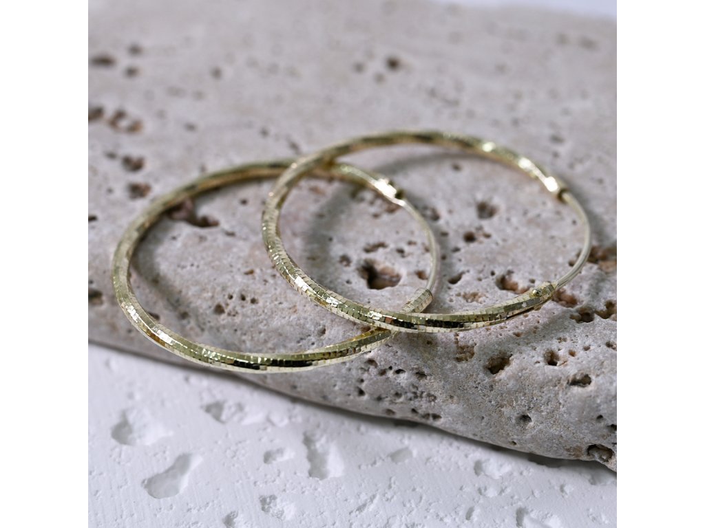 - náušnice ve tvaru kruhu s ozdobným prolisováním