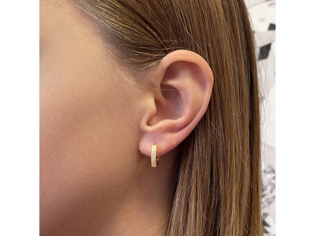 Kruhové náušnice sluší ženám v každém věku. Obzvlášť když jsou decentní, pozlacené a jen s bílými zirkony.