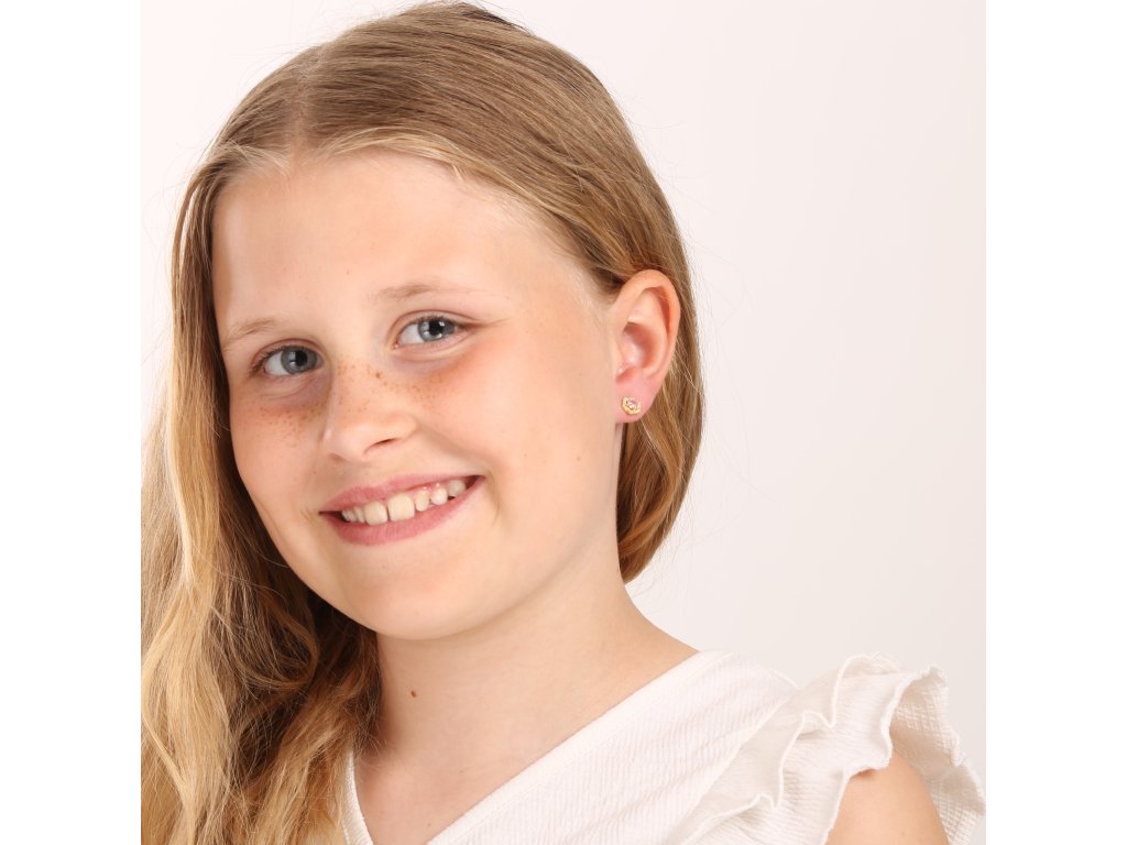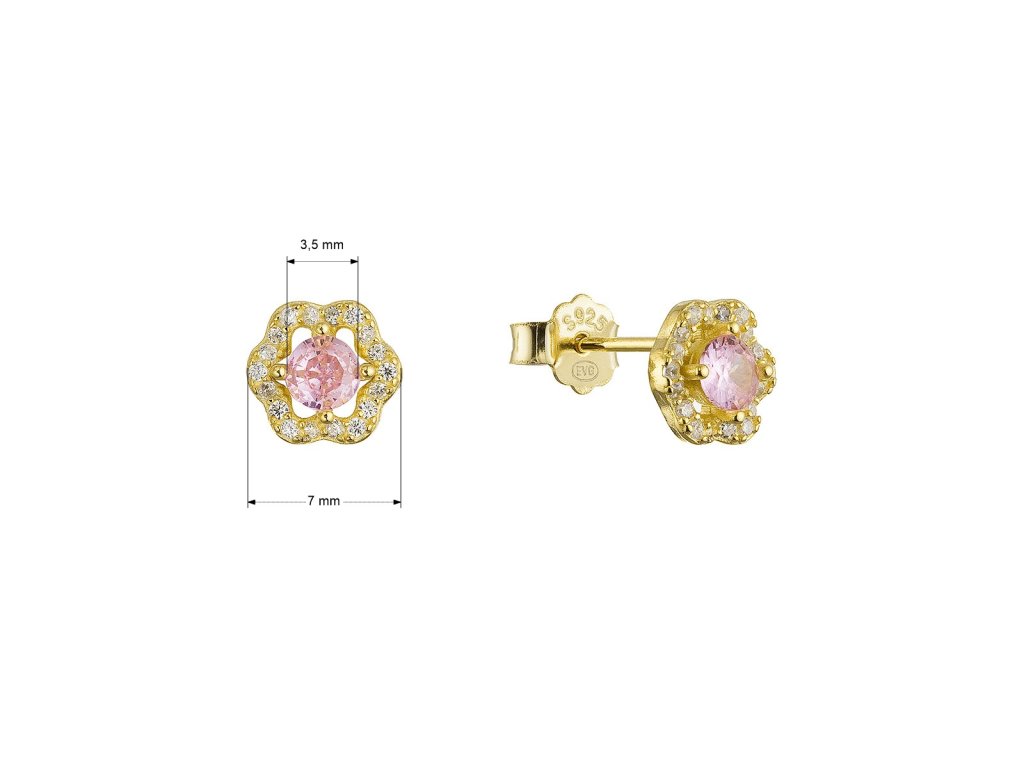 Pozlacené stříbrné náušnice kytičky s růžovým zirkonem 11702.3 rose