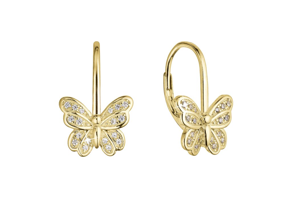 Pozlacené stříbrné náušnice motýlci se zirkony 11500.1 crystal