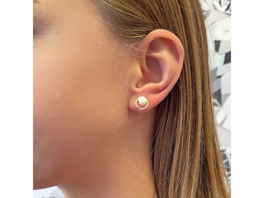 Přemýšlíte, čím byste mohli potěšit? Vyzkoušejte jedinečně zpracované pozlacené stříbrné náušnice s bílou říční perlou a zirkony 21067.1.