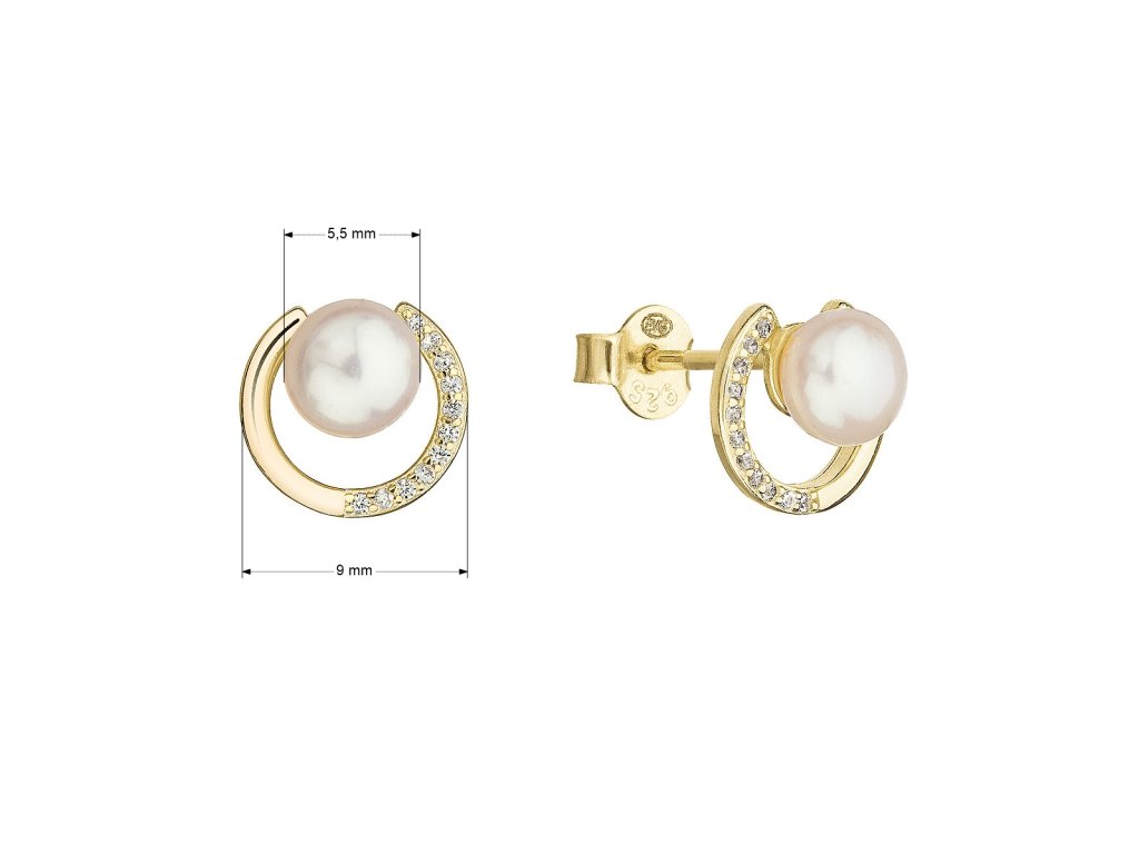 Parametry pozlacených stříbrných náušnic pecek s bílou říční perlou 21067.1