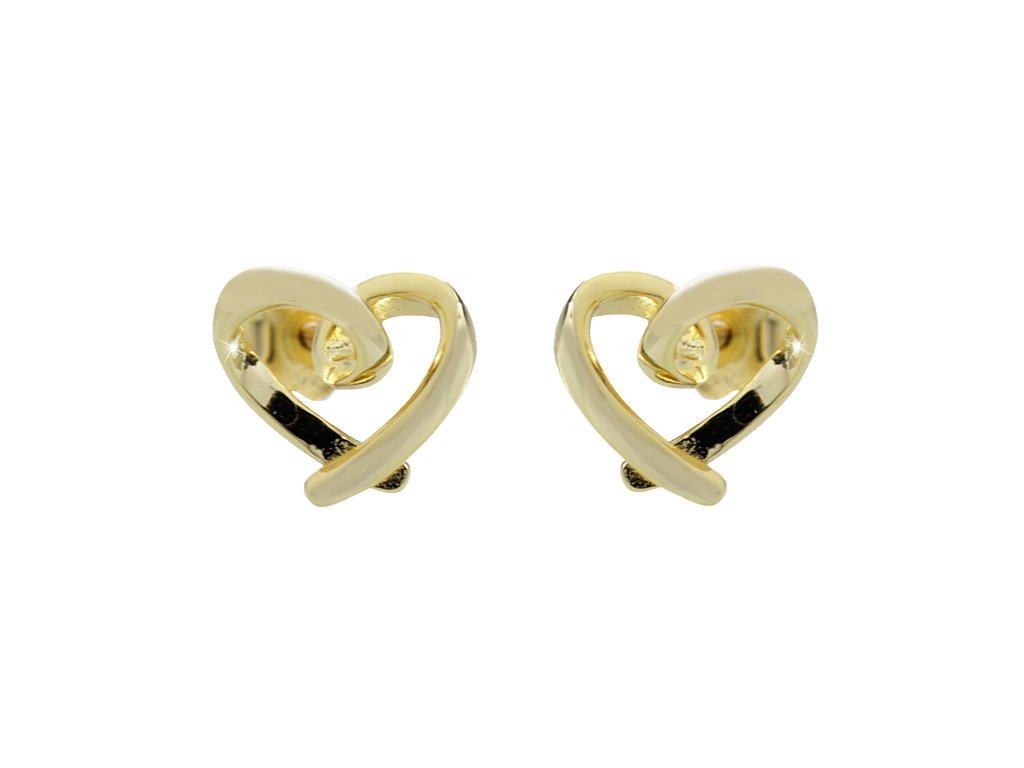 Pozlacené stříbrné náušnice puzety mini překřížené srdce kovové bez krystalů (Stříbro 925/1000)