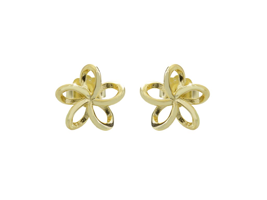 Pozlacené stříbrné náušnice puzety mini propletený květ kovový bez krystalů (Stříbro 925/1000)