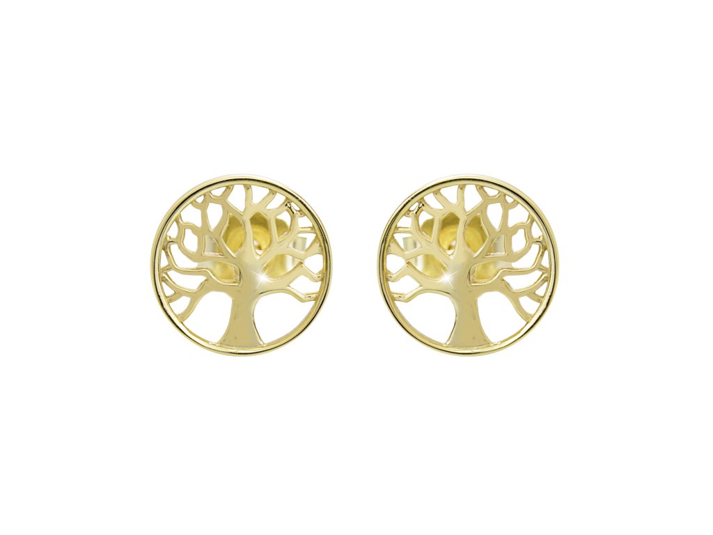 Pozlacené stříbrné náušnice puzety mini strom života kovový bez krystalů (Stříbro 925/1000)