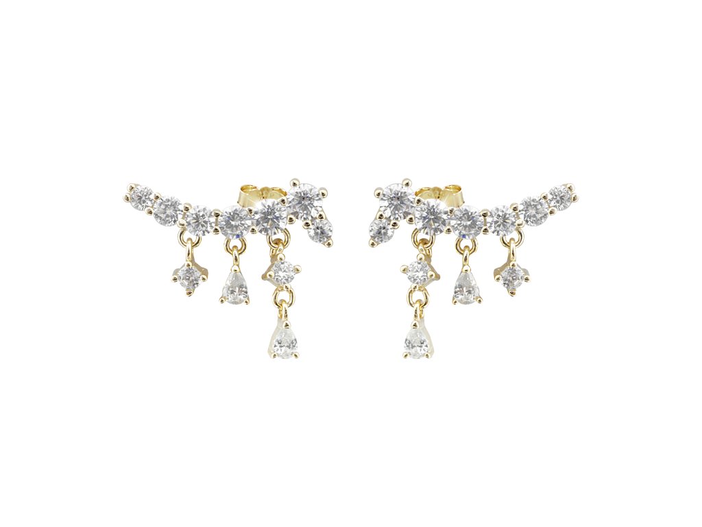 Pozlacené stříbrné náušnice puzety prohnuté s ověsy osázené Kubickými zirkony Crystal (Stříbro 925/1000)