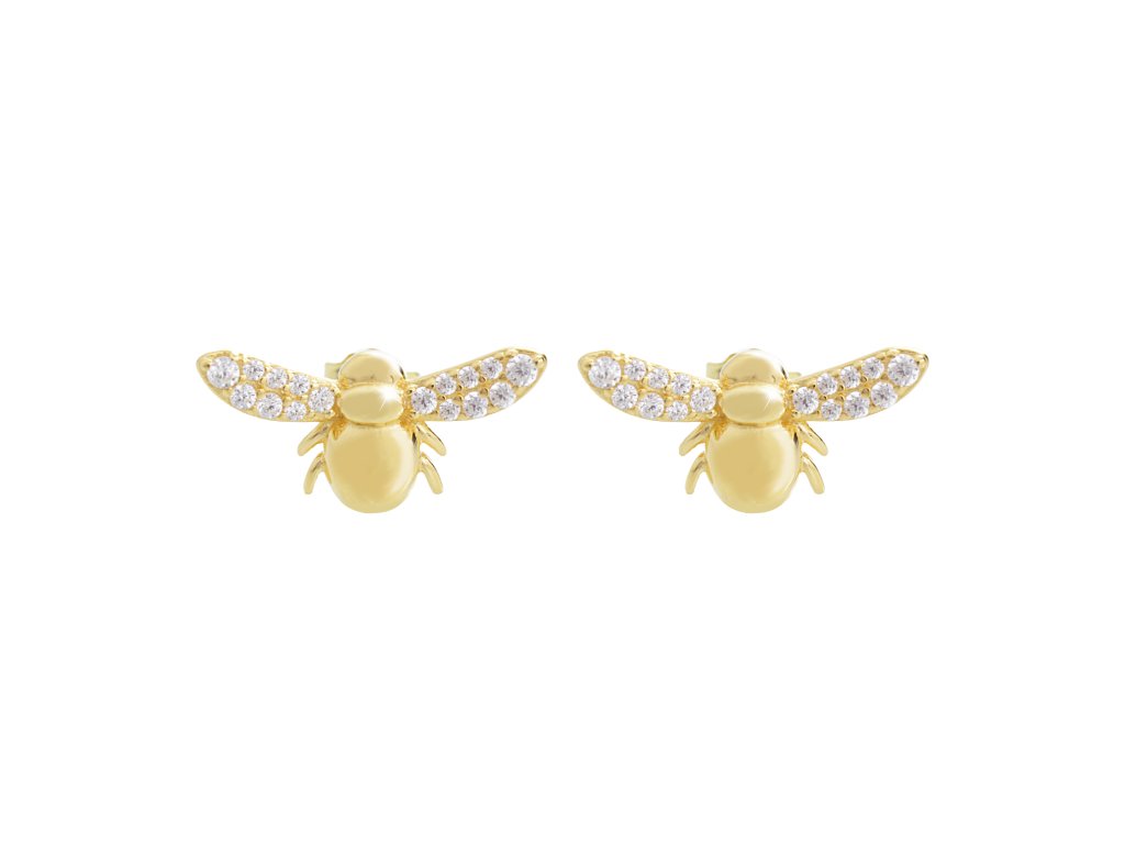 Pozlacené stříbrné náušnice puzety s včelkou a s Kubickými zirkony Crystal (Stříbro 925/1000)