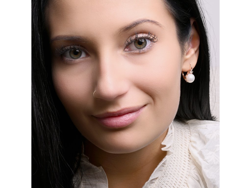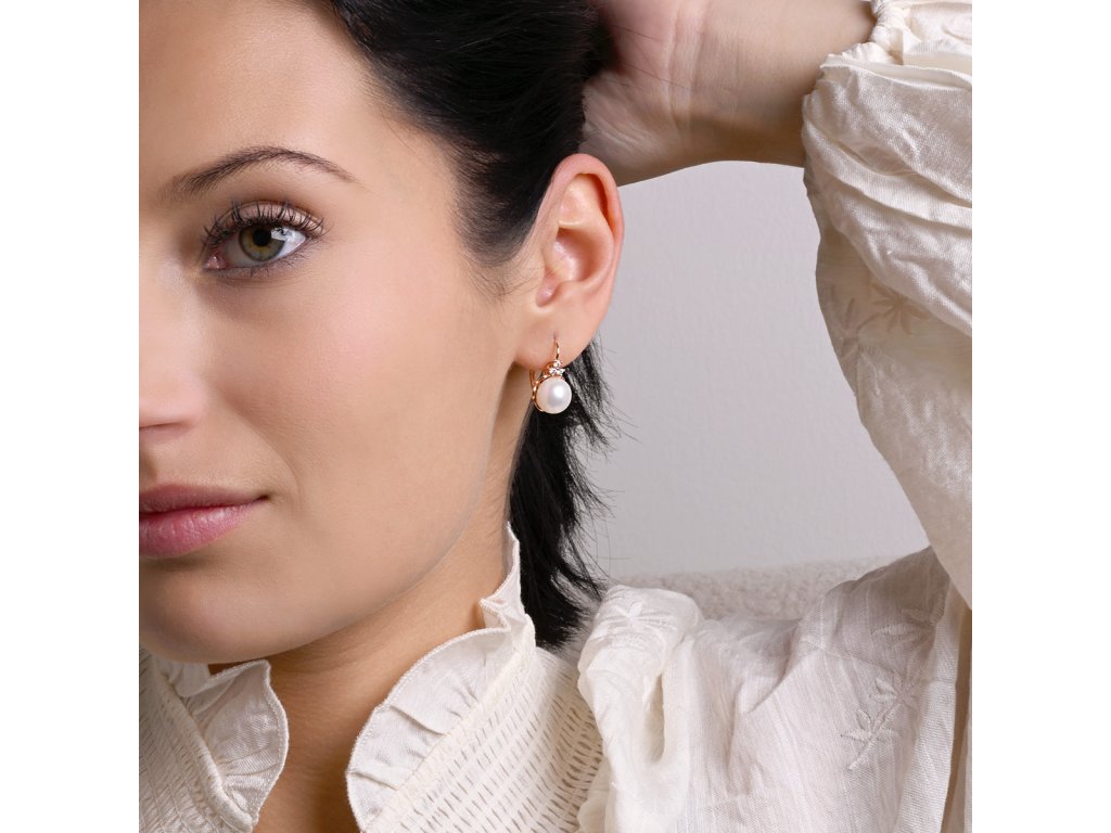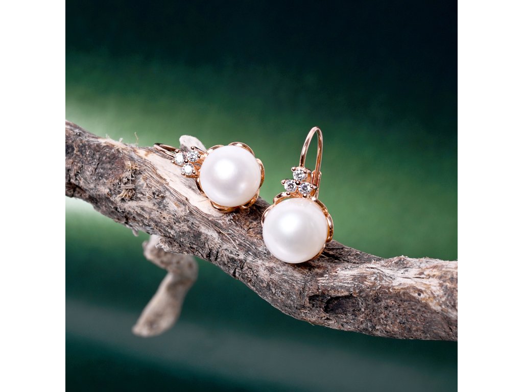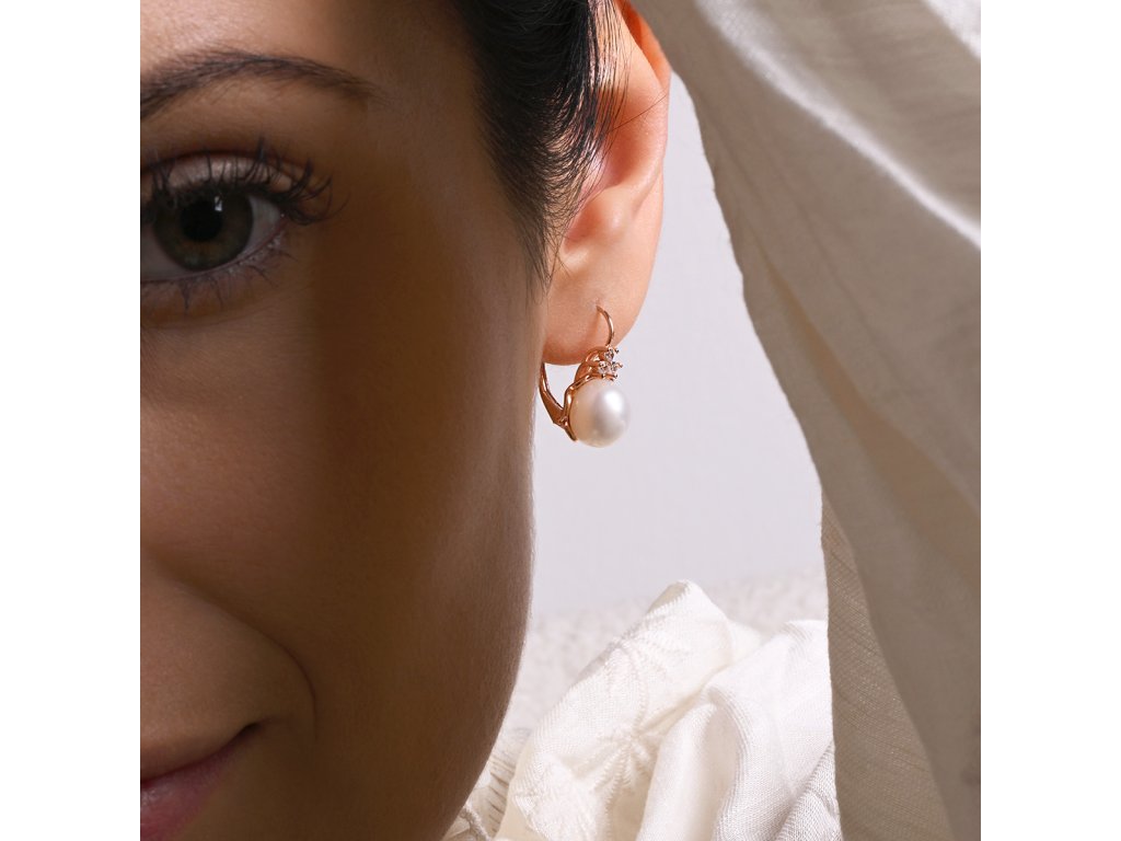 Perlové náušnice 21108.1 jsou vyrobeny z růžově pozlaceného stříbra o ryzosti 925/1000 a jsou zdobeny říční perlou kvality AA v bílé barvě. Kromě perel šperk zdobí také malé tři třpytivé zirkony, které jsou nad perlou a dodávají šperku nádech luxusu.