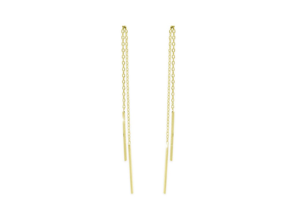 Pozlacené stříbrné provlékací náušnice dva řetízky (Stříbro 925/1000)