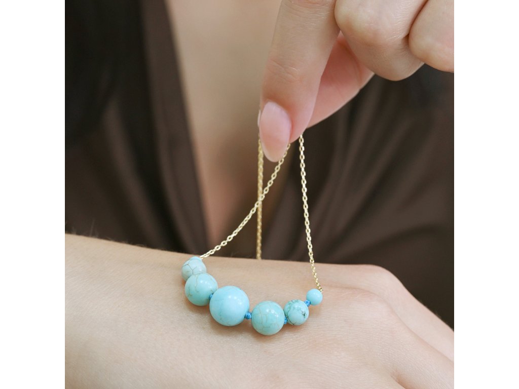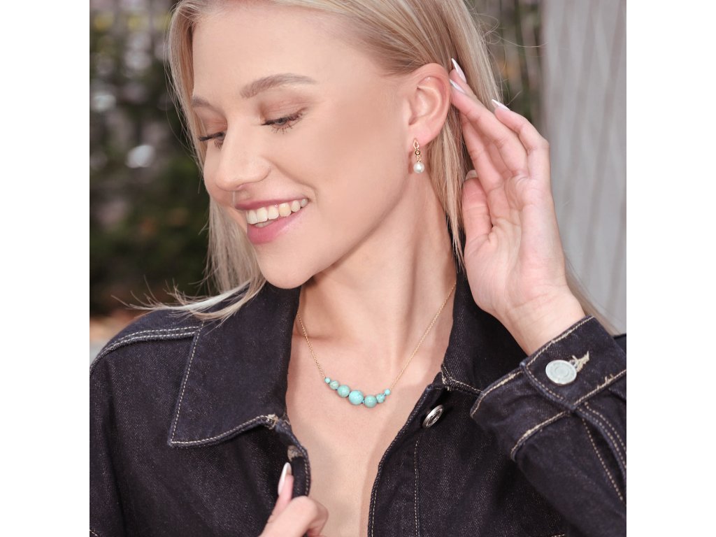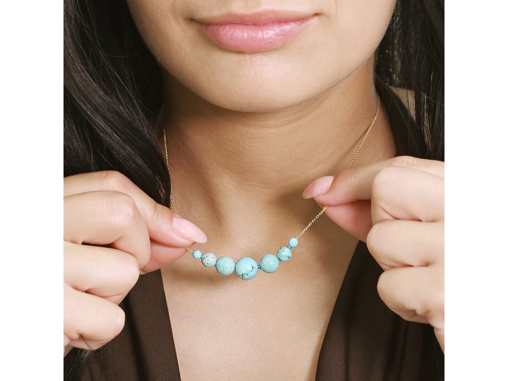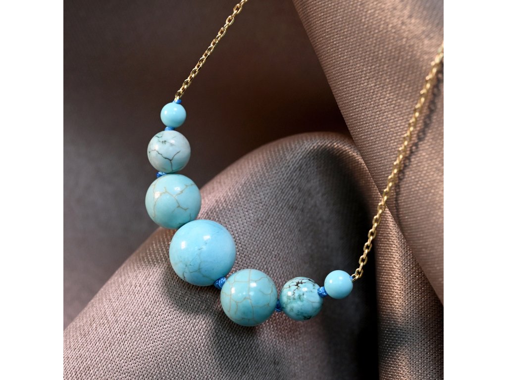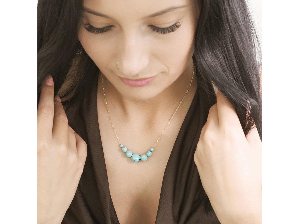 Elegantní pozlacený náhrdelník zdobený syntetickým tyrkysem.