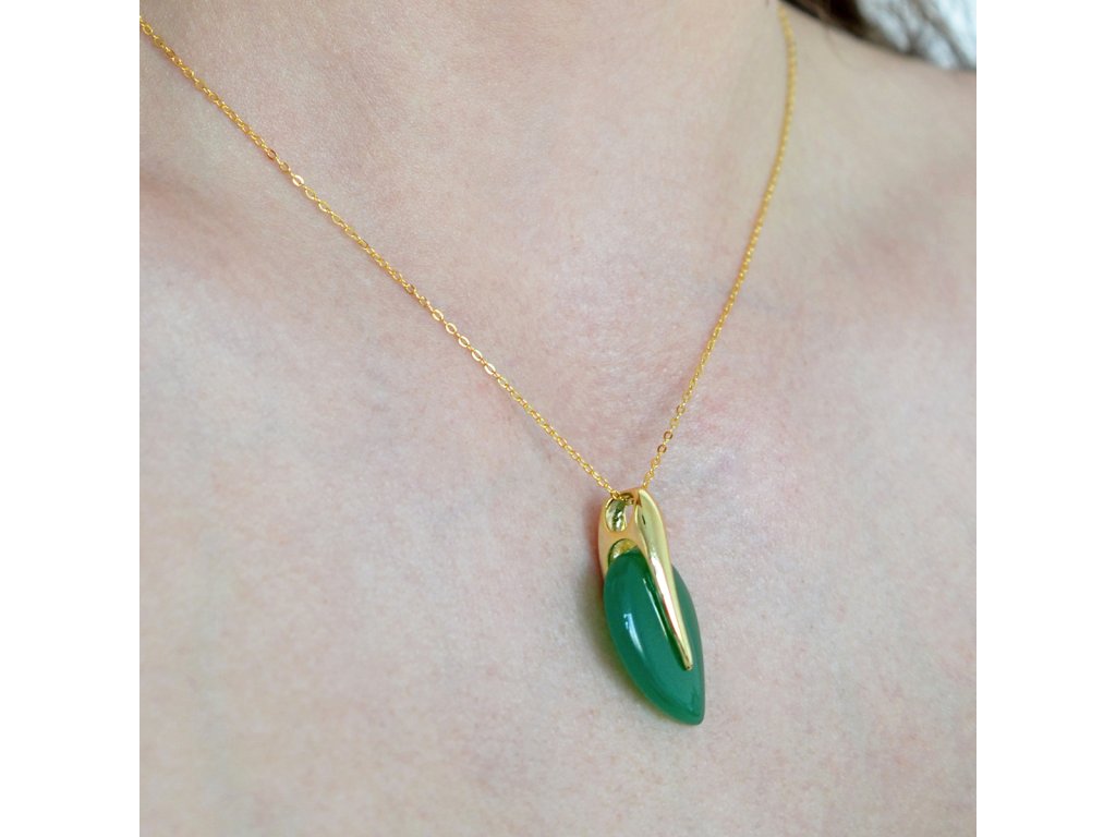 Pozlacený náhrdelník se zeleným achátem 12171.3