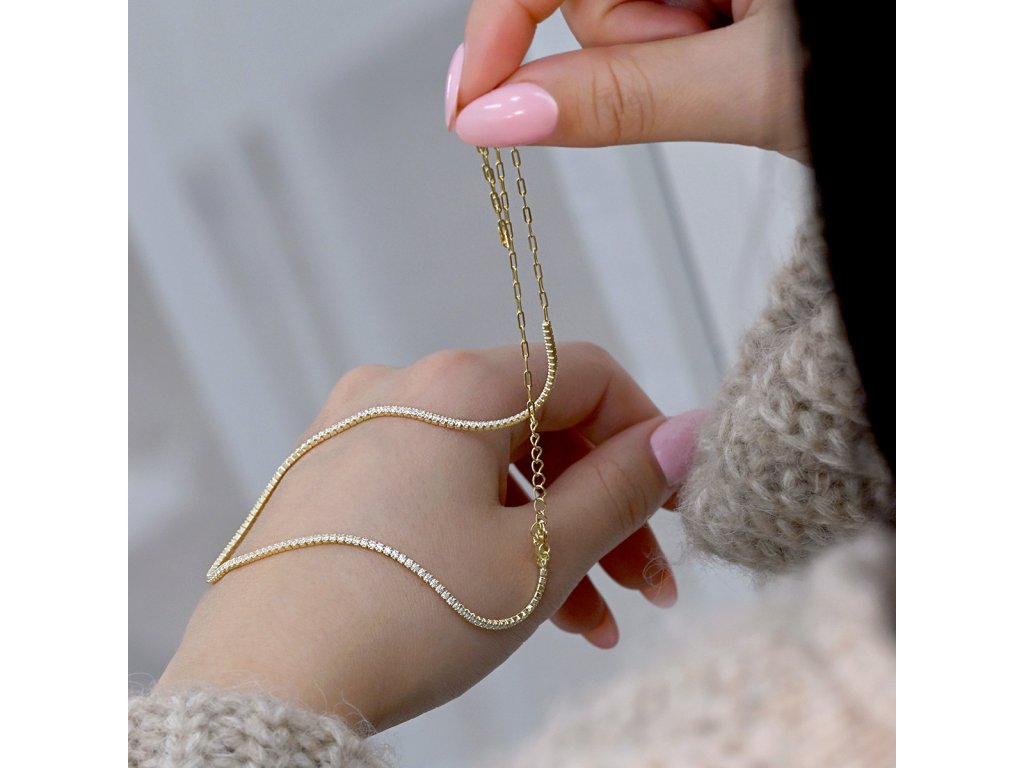 Pozlacený náhrdelník se zirkony 12173.1