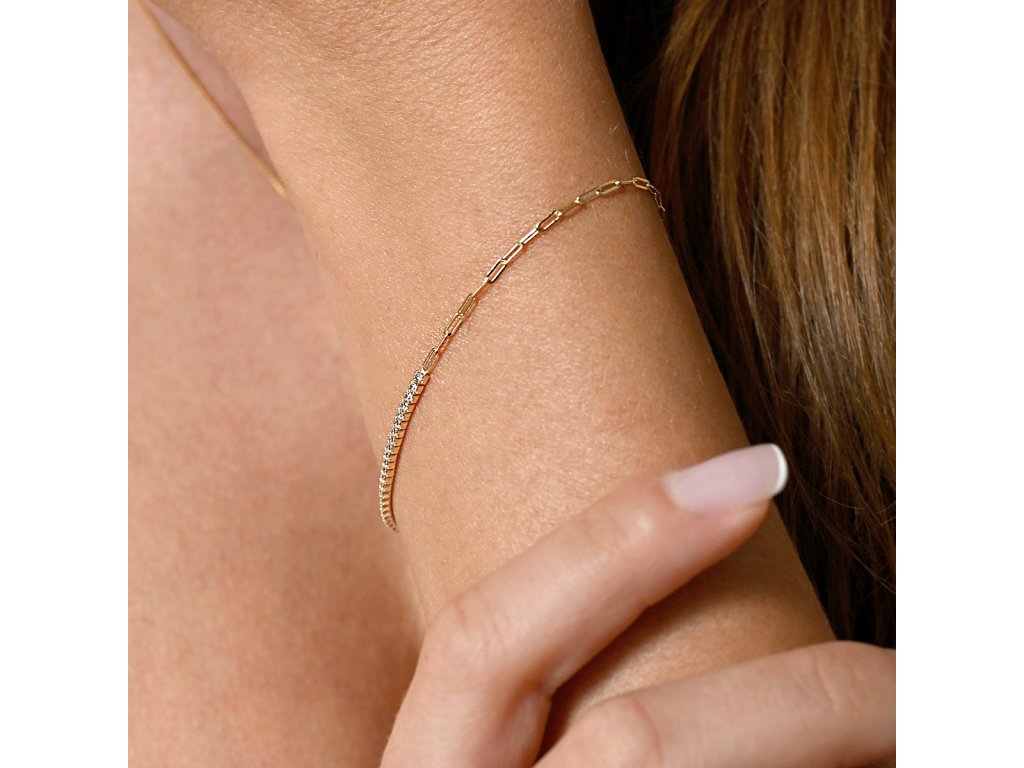Pozlacený náramek se zirkony a řetízkem 13103.1