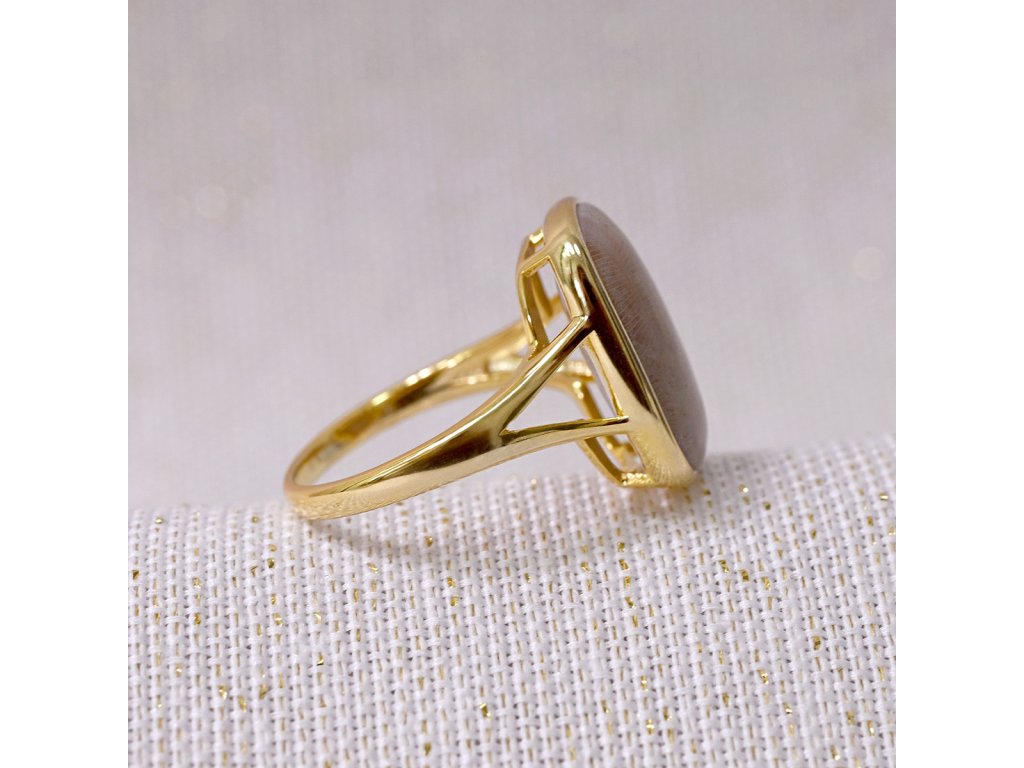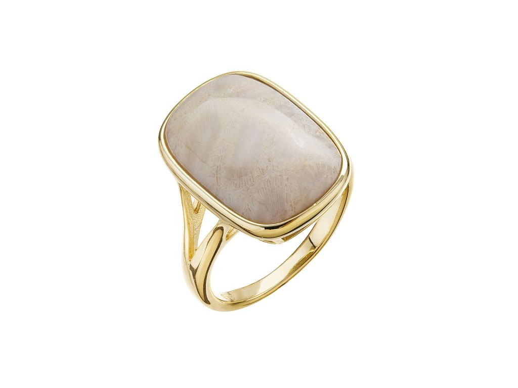 Pozlacený prsten obdélník s fosilním korálem 15026.3
