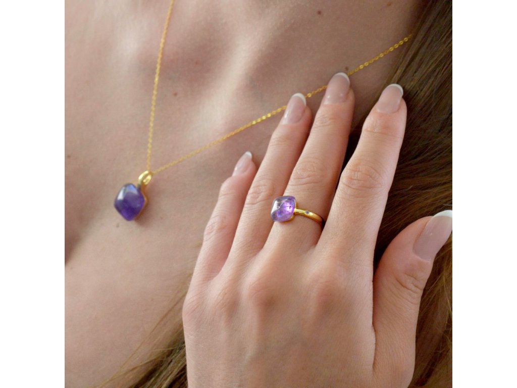 Elegantní pozlacený prsten s pravým ametystem - šperk, který nabízí víc než krásu.