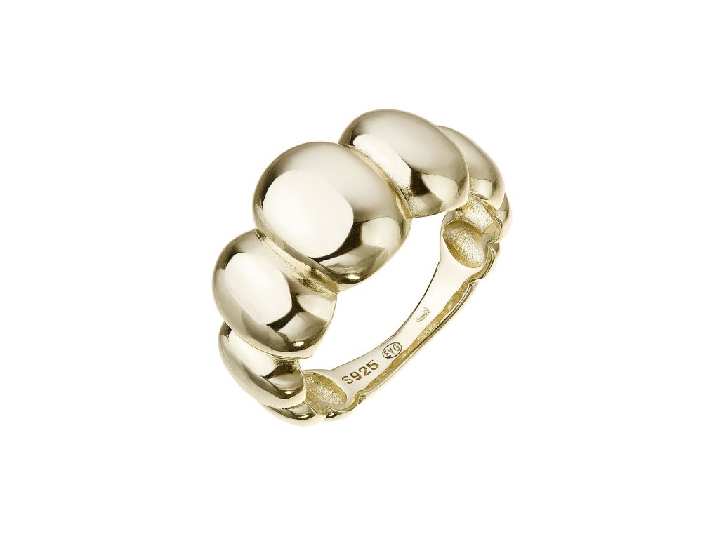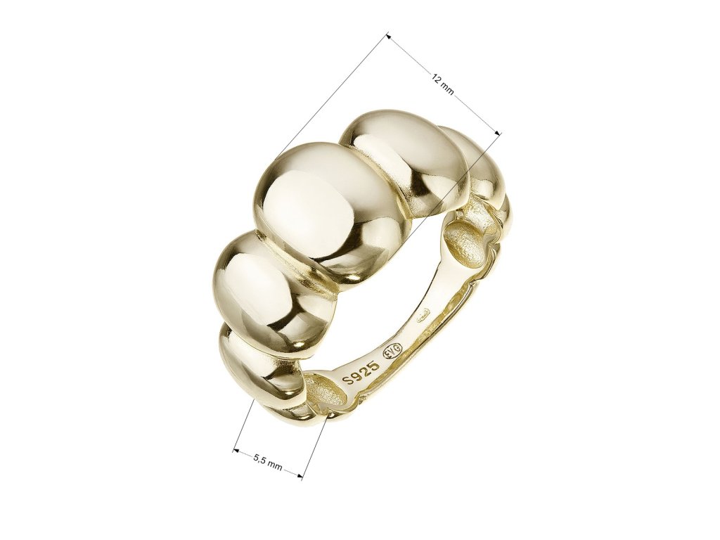 Moderní pozlacený prsten ze stříbra s výrazným zaobleným designem a zrcadlovým leskem. Nadčasový doplněk, který rozzáří každý styl a okamžitě upoutá pozornost. Lesklý povrch a trendy tvar dodávají šperku elegantní, ale současně odvážný vzhled. Perfektní volba pro ženy, které milují styl a originalitu.