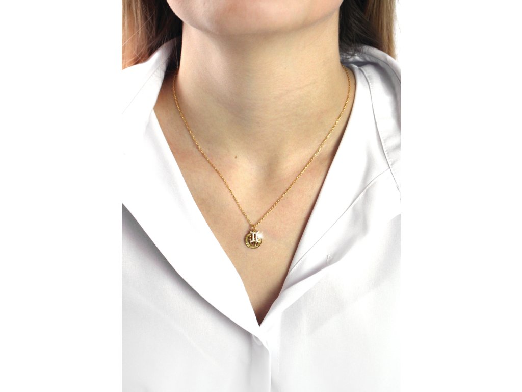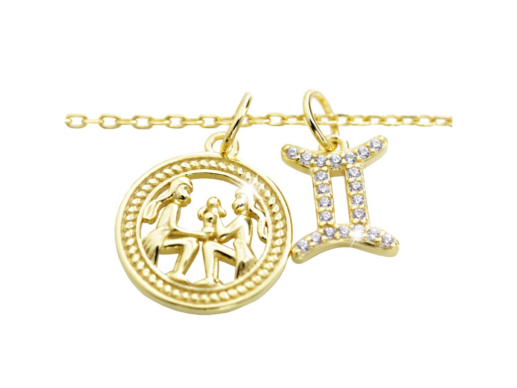 Pozlacený stříbrný náhrdelník dva přívěsky znamení zvěrokruhu s Kubickými zirkony Blíženci (Stříbro 925/1000)