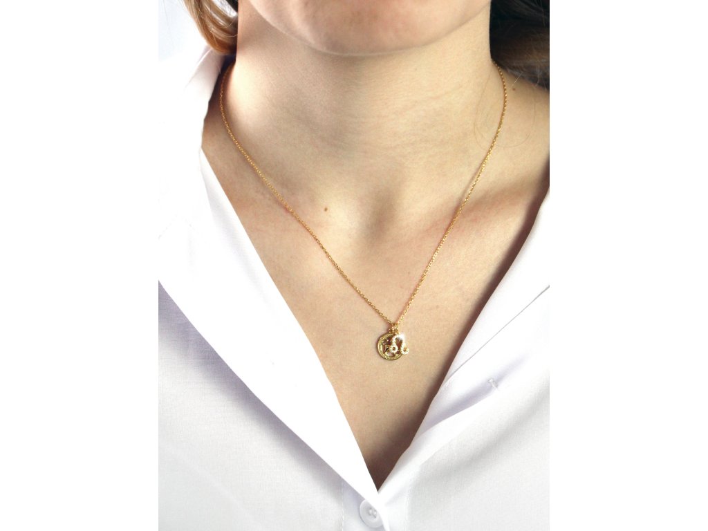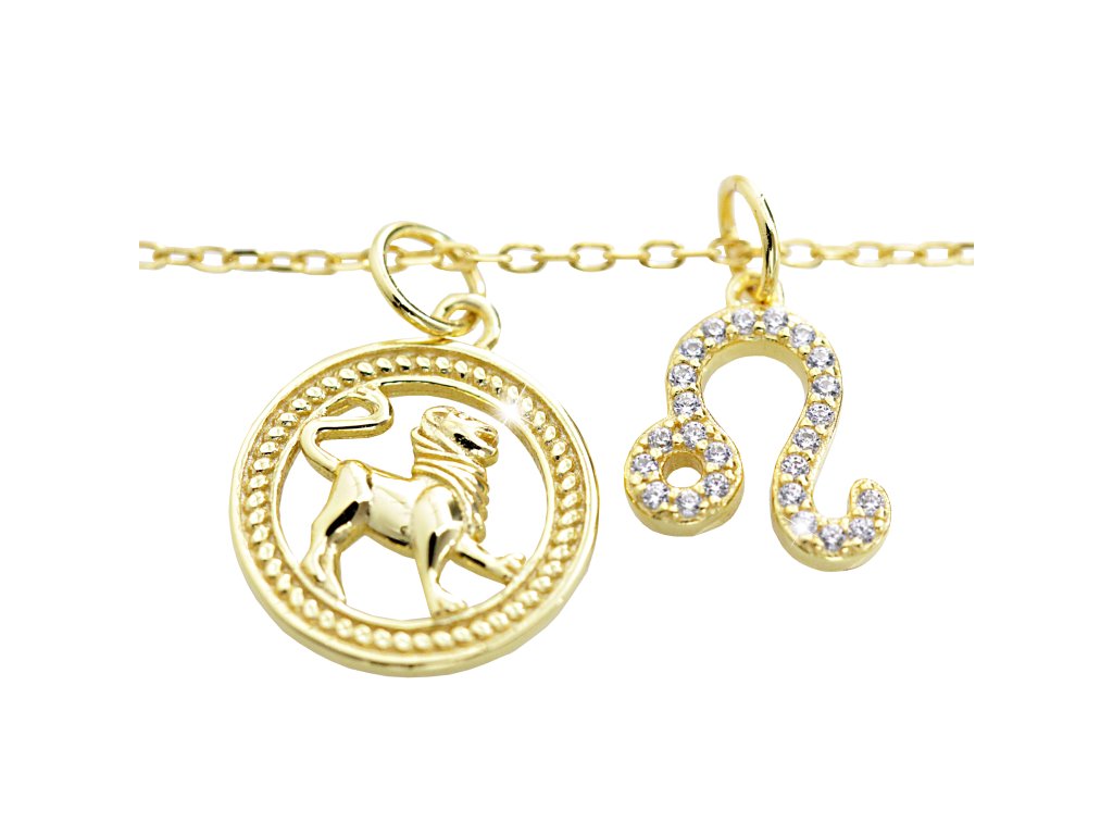 Pozlacený stříbrný náhrdelník dva přívěsky znamení zvěrokruhu s Kubickými zirkony Lev (Stříbro 925/1000)