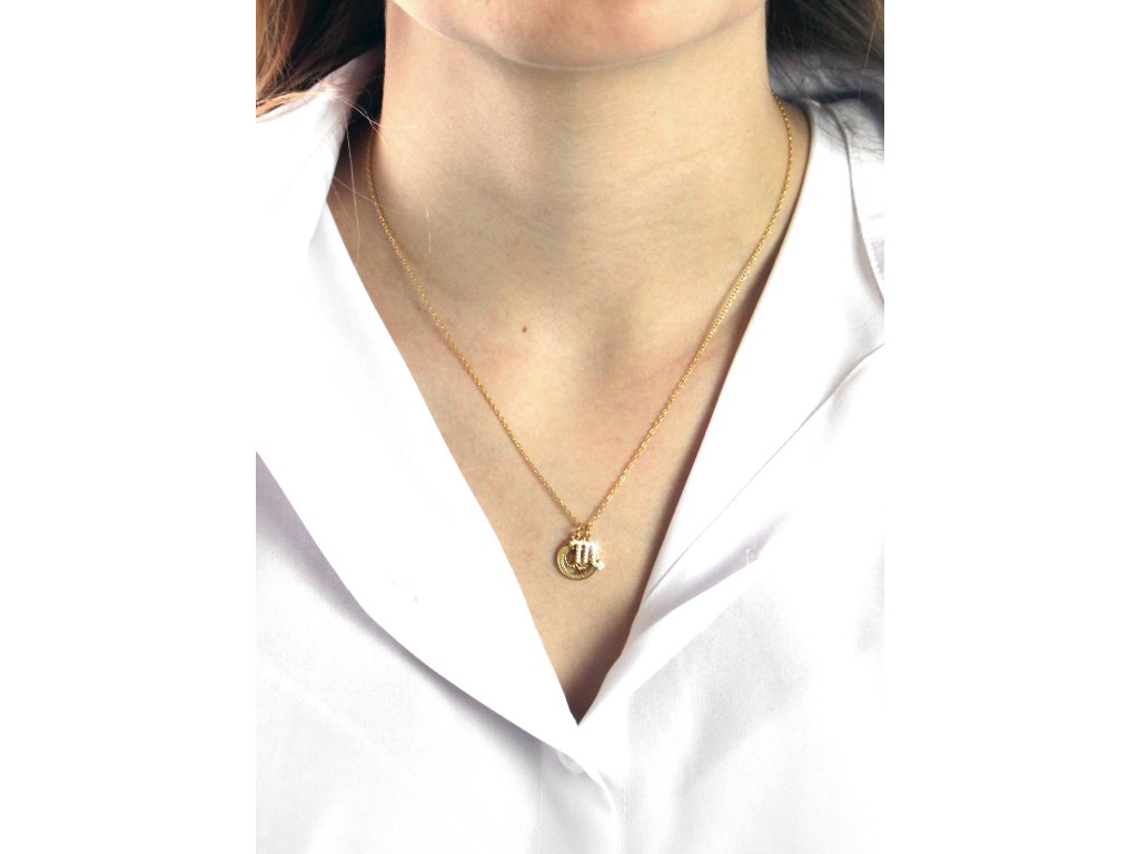 Pozlacený stříbrný náhrdelník dva přívěsky znamení zvěrokruhu s Kubickými zirkony Štír (Stříbro 925/1000)