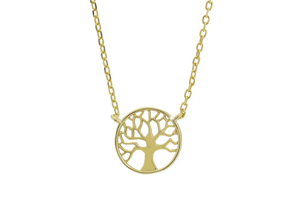 Pozlacený stříbrný náhrdelník mini strom života kovový bez krystalů (Stříbro 925/1000)