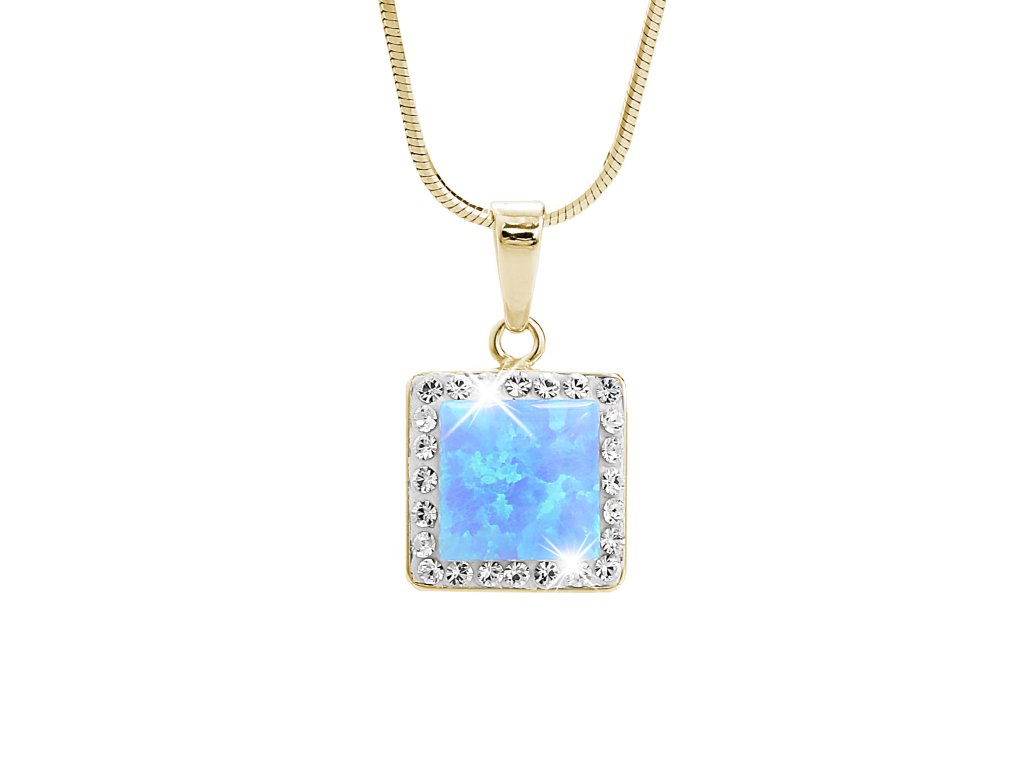 Pozlacený stříbrný náhrdelník s čtvercovým opálem a krystaly Swarovski Blue velký (Stříbro 925/1000)