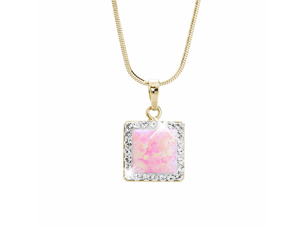 Pozlacený stříbrný náhrdelník s čtvercovým opálem a krystaly Swarovski Rose velký (Stříbro 925/1000)