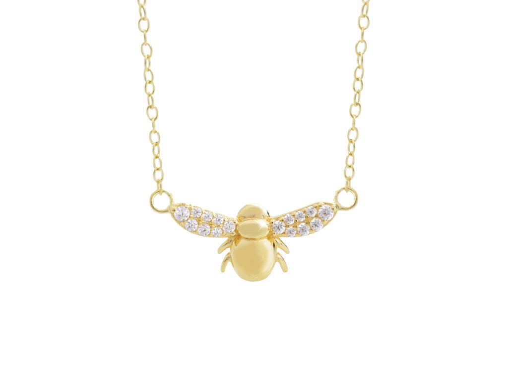 Pozlacený stříbrný náhrdelník s včelkou a s Kubickými zirkony Crystal (Stříbro 925/1000)