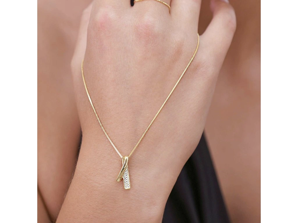 Pozlacený stříbrný náhrdelník stuha se zirkony 12054.1
